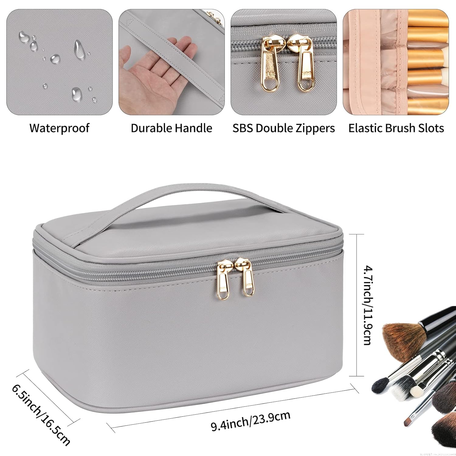 Size: 9.4 x 6.5 x 4.7 (inch) . Portable and lightweight design makeup bag for women which makes the makeup travel bag fit for suitcases and easy to carry. Do your makeup anywhere. The smooth two-way zippers allow easy access