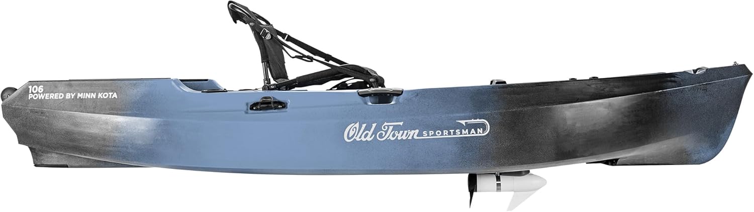 Equipped with a saltwater-ready trolling motor, the Old Town Sportsman 106 Powered by Minn Kota motorized kayak offers Minn Kota’s low-profile 12-volt motor with 45 pounds of thrust. Motor battery is not included.