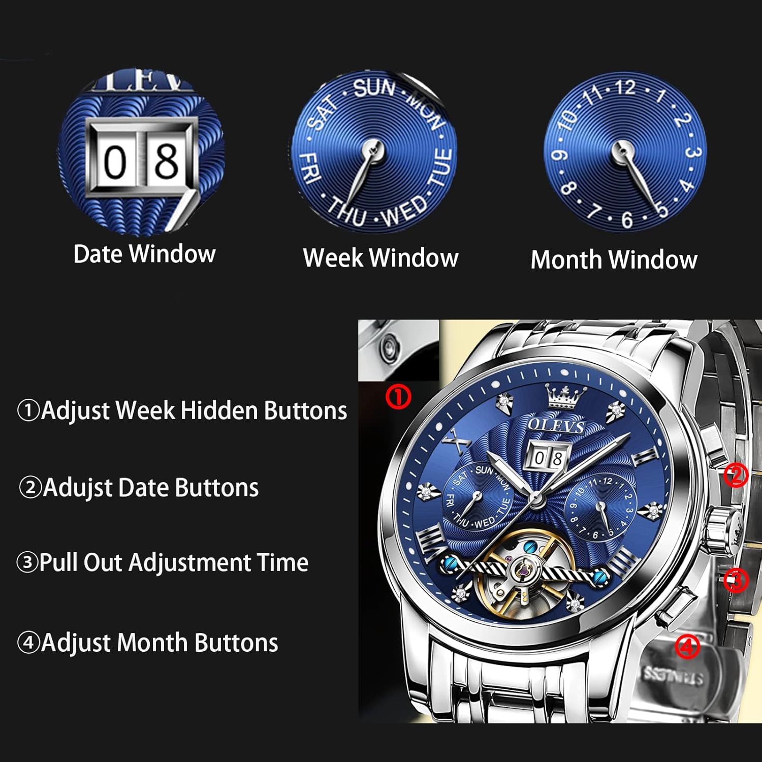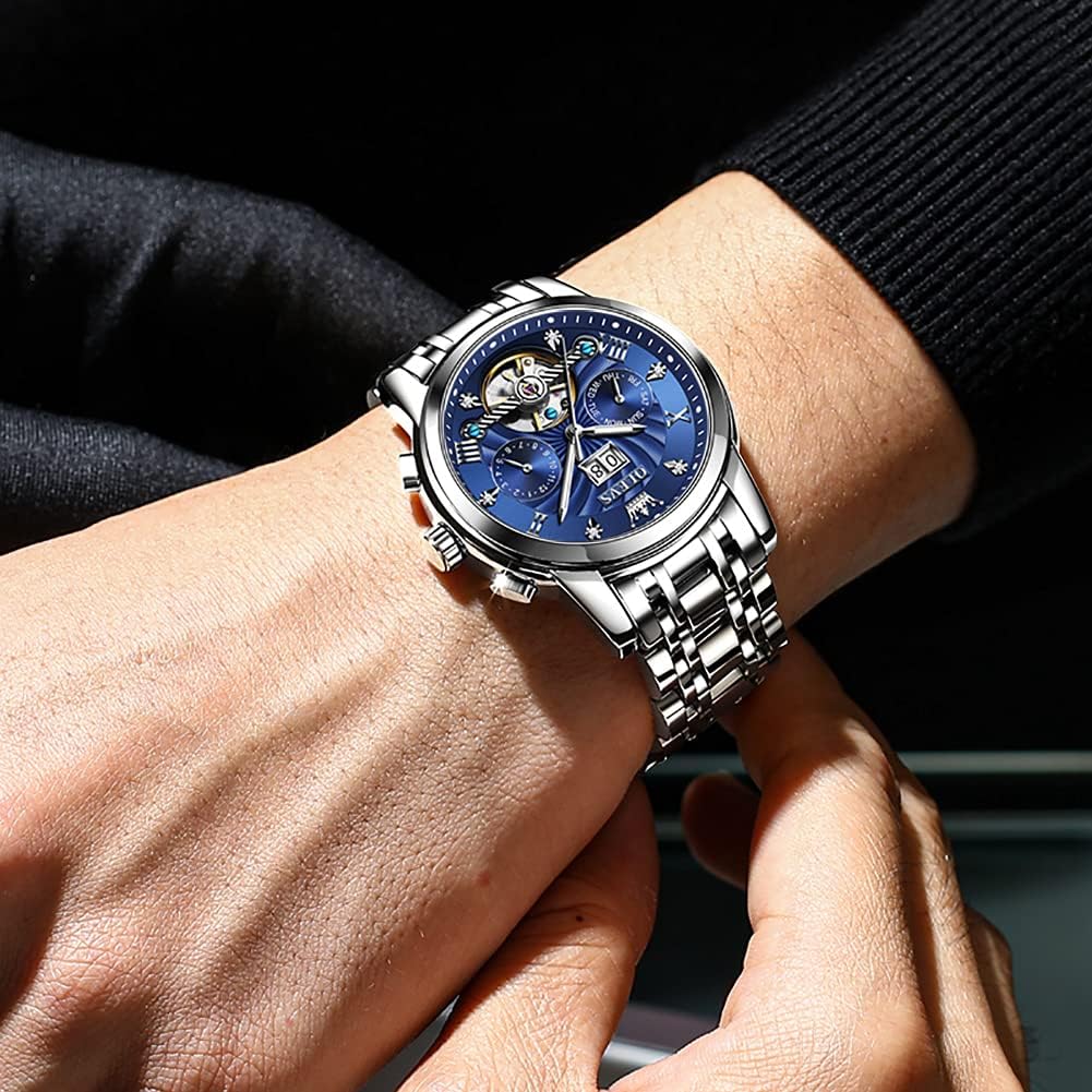 OLEVS Mechanical Watch Men’s,Classic Silver Watches for Men, Waterproof Stainless Steel Roman Numbers Men’s Watch Easy to Read