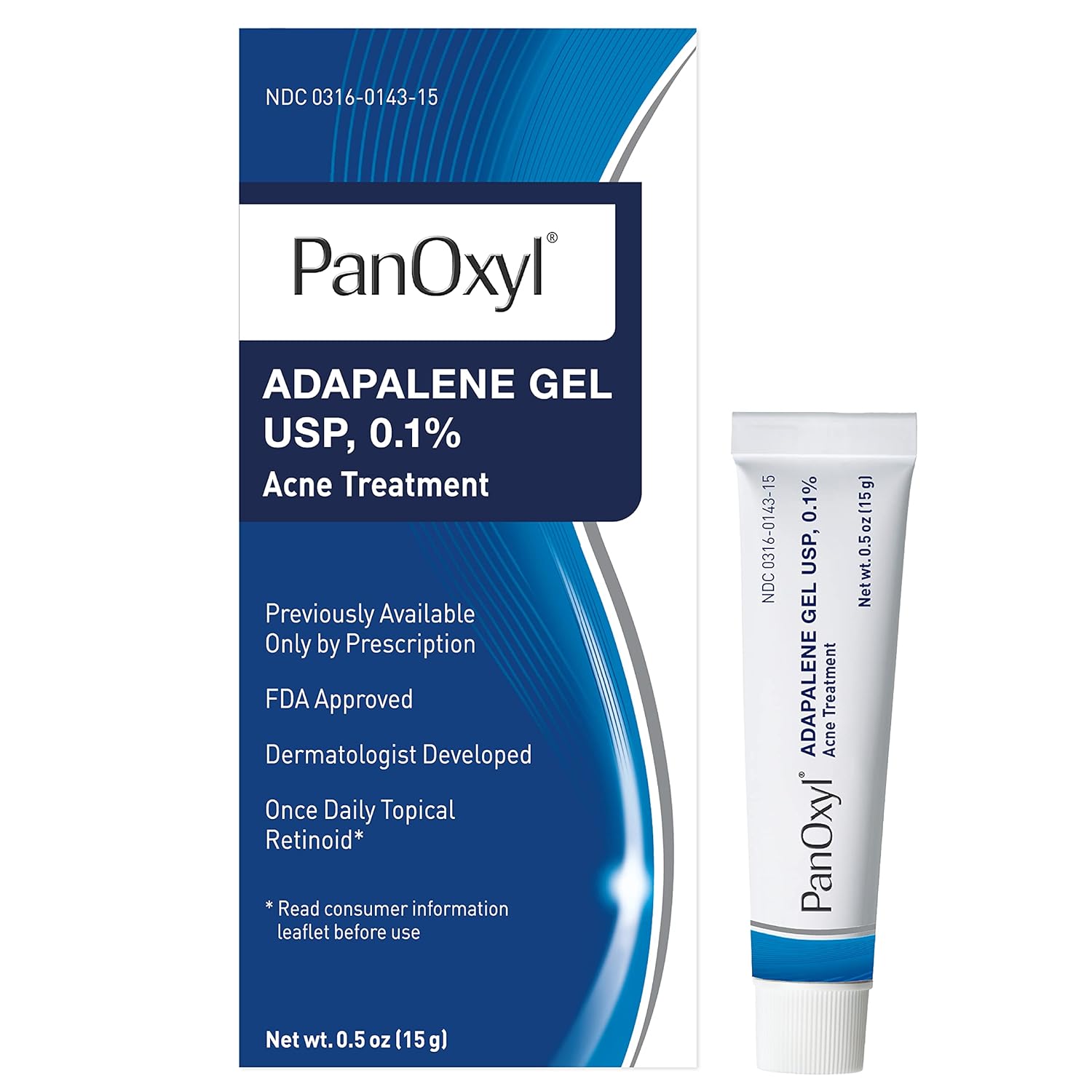 PanOxyl Adapalene 0.1% Leave-On Gel, 30 Day Supply, Retinoid Gel Acne Treatment, Acne Prone Skin, Oil Free, Fragrance Free, 0.5 oz