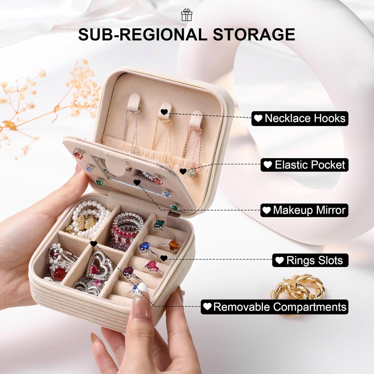 Easy to Carry: Perfect size for easy storage in handbags, travel bags, or luggage. The travel jewelry case also feature a zipper design, ensuring the safety of your jewelry and easy access.