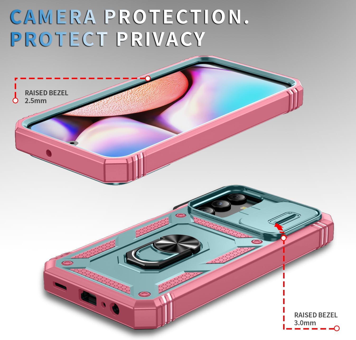 【A15 5G Phone Case with Camera Cover】The case galaxy a15 4g unique lens cover function.slide cover design for protecting privacy and hide the camera perfectly,protect the lenses from scuffs, smudges, and other debris build up with a15 5G phone case, no longer needed glass camera protector.NO FRONT PROTECTION.