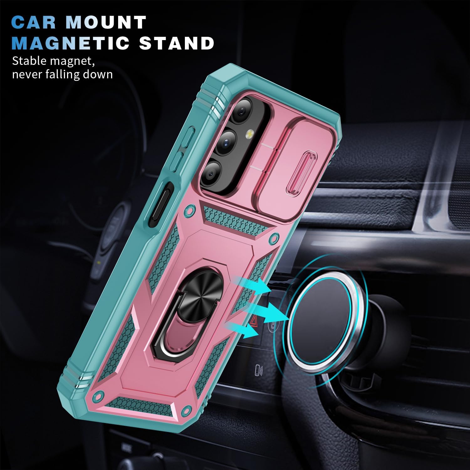 PASNEW for Samsung Galaxy A15 5G Case with Kickstand & Slide Camera Cover,Military Grade Heavy Duty Full Body Shockproof Multi-Layer Shell for A15 4G,6.5 inch,Pink Green