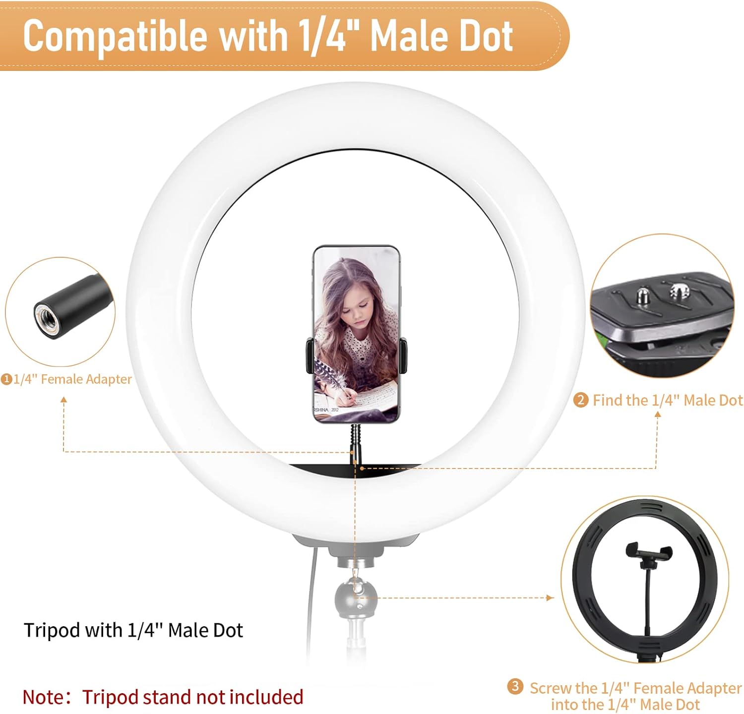 Compatible with Ubeesize ring light phone stands or any stand tripods with 1/4 male thread or hot shoe dock.