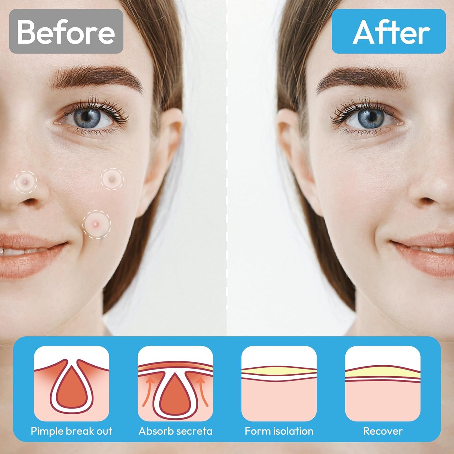 🌿【Acne Patches with Natural Ingredients 】Our Zit Patches which includes tea tree oil(calming, soothing, and pore-tightening), salicylic acid(penetrating pores and helping to clear up skin), Centella(Faster for acne healing & reduce inflammation), and hydrocolloid(Promote clear-looking skin). These acne patches for face are ideal for absorbing pus from acne, whiteheads. Speed up the acne elimination process