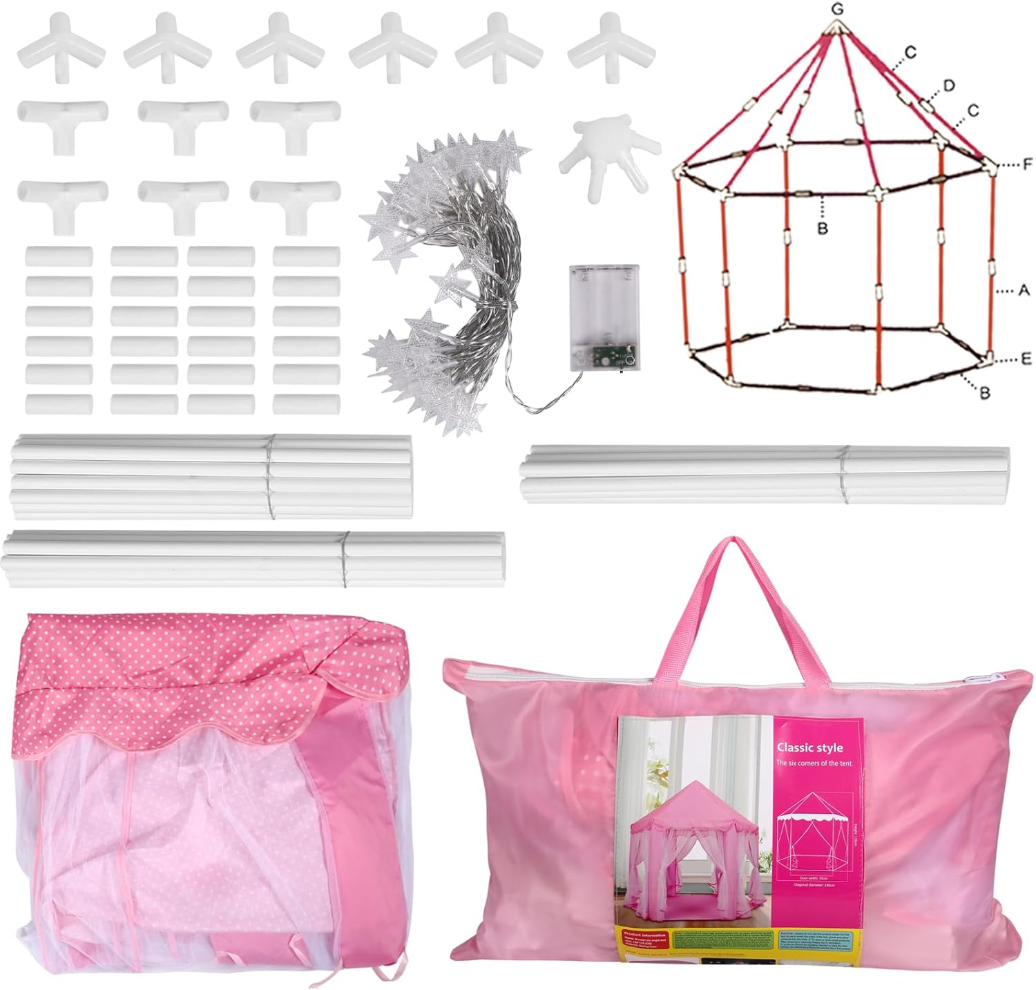 Princess Tent for Girls,Kids Castle Play Tent with LED Star Lights,Large Playhouse Girl Toy Gifts Age 3+,Indoor and Outdoor Games 55.5″x 53″(DxH)
