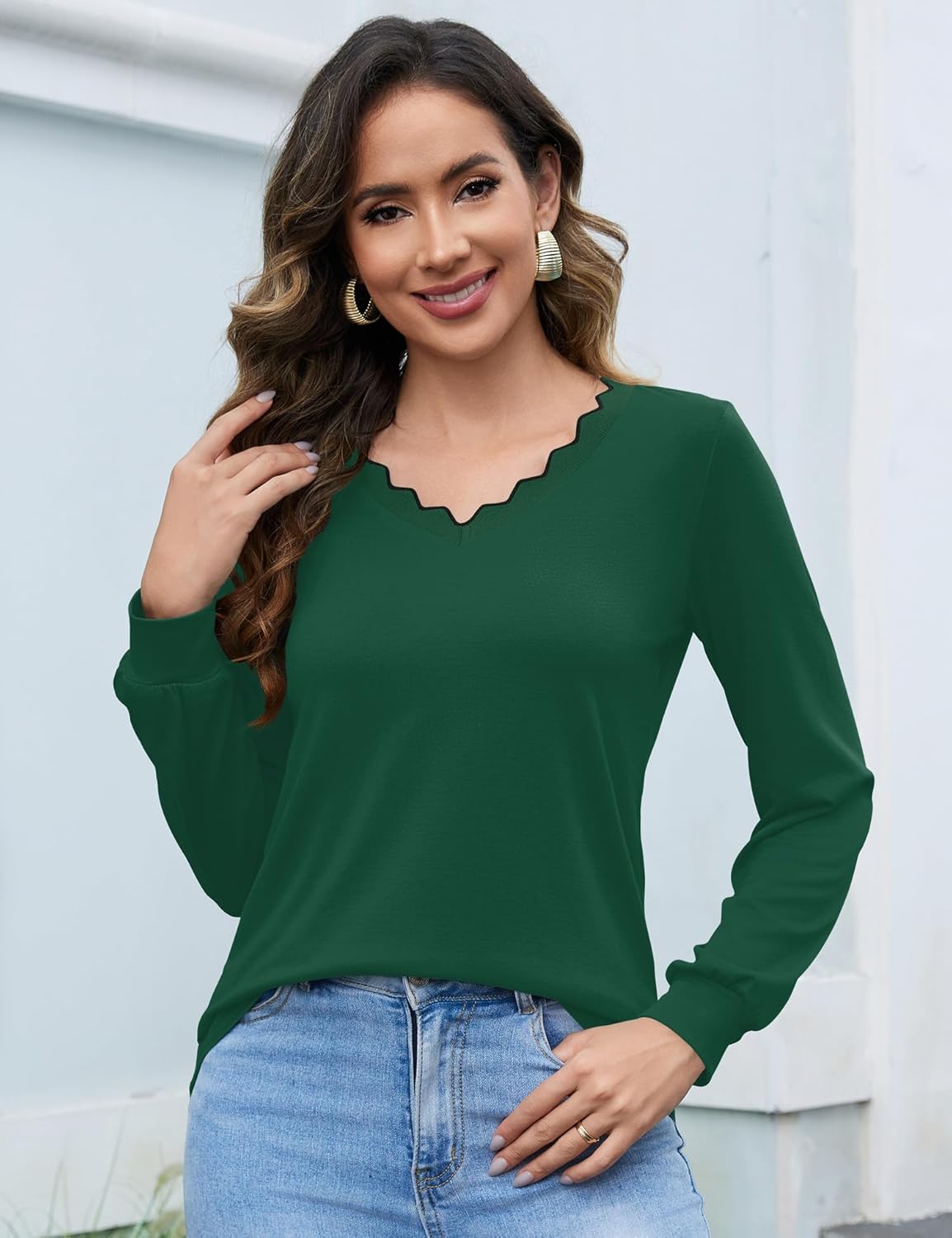 Fall Fashion Tops for Women V-Neck Long Sleeve Shirts Loose Blouses