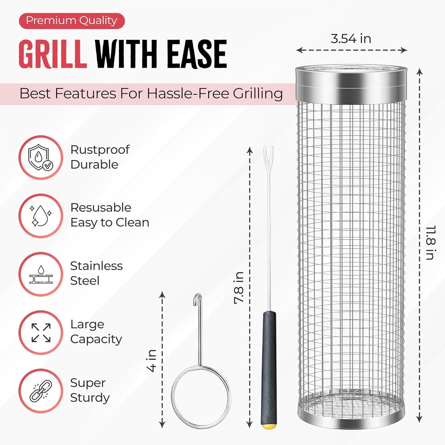 【Rotatable Design】: This Rolling Grill Basket has a cylindrical design, flexible and 360°rotatable, it not only grills a variety of foods that were previously difficult to cook on the grill, but also prevents food from falling. Grill Baskets For Outdoor Grill cooks food evenly. It allows you to easily grill dishes you were afraid to try before.