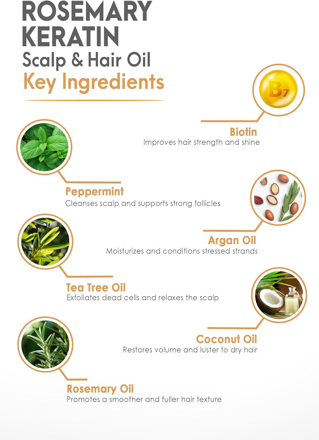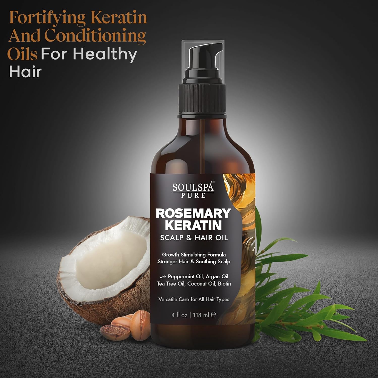 Rosemary Hair Oil – Keratin Infused, Strengthens, Revitalizes & Promotes Hair Growth, Rosemary Scalp Oil – with Biotin, Peppermint Oil & Tea Tree Oil for Optimal Hair Care – 4 fl oz