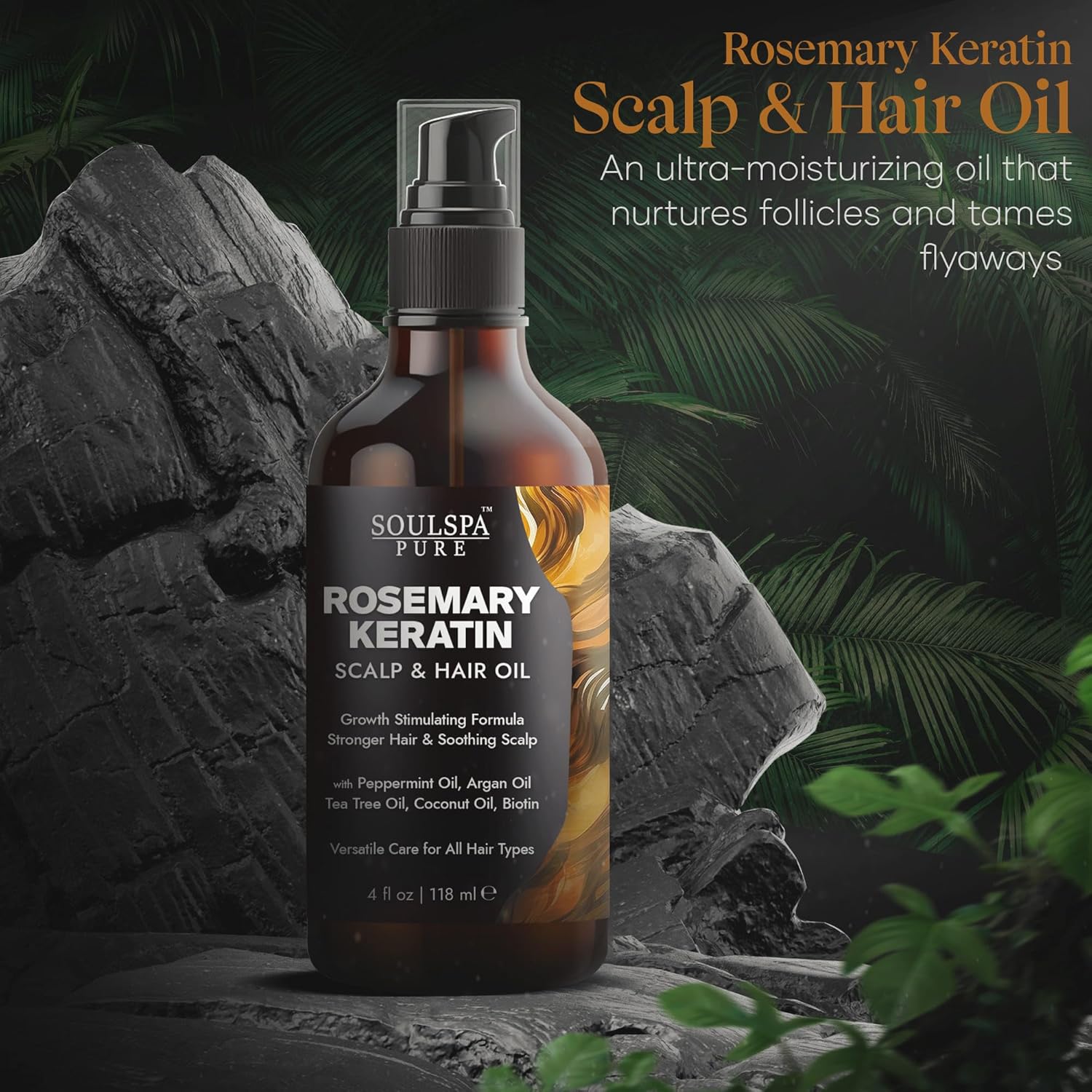 𝐏𝐫𝐨𝐦𝐨𝐭𝐞𝐬 𝐇𝐚𝐢𝐫 𝐆𝐫𝐨𝐰𝐭𝐡: Experience SOULSPA PURE Rosemary Scalp and Hair Oil, a potent blend designed to stimulate hair growth. Our rosemary oil for hair growth is an essential formula for scalp oil hair growth, offering deep nourishment