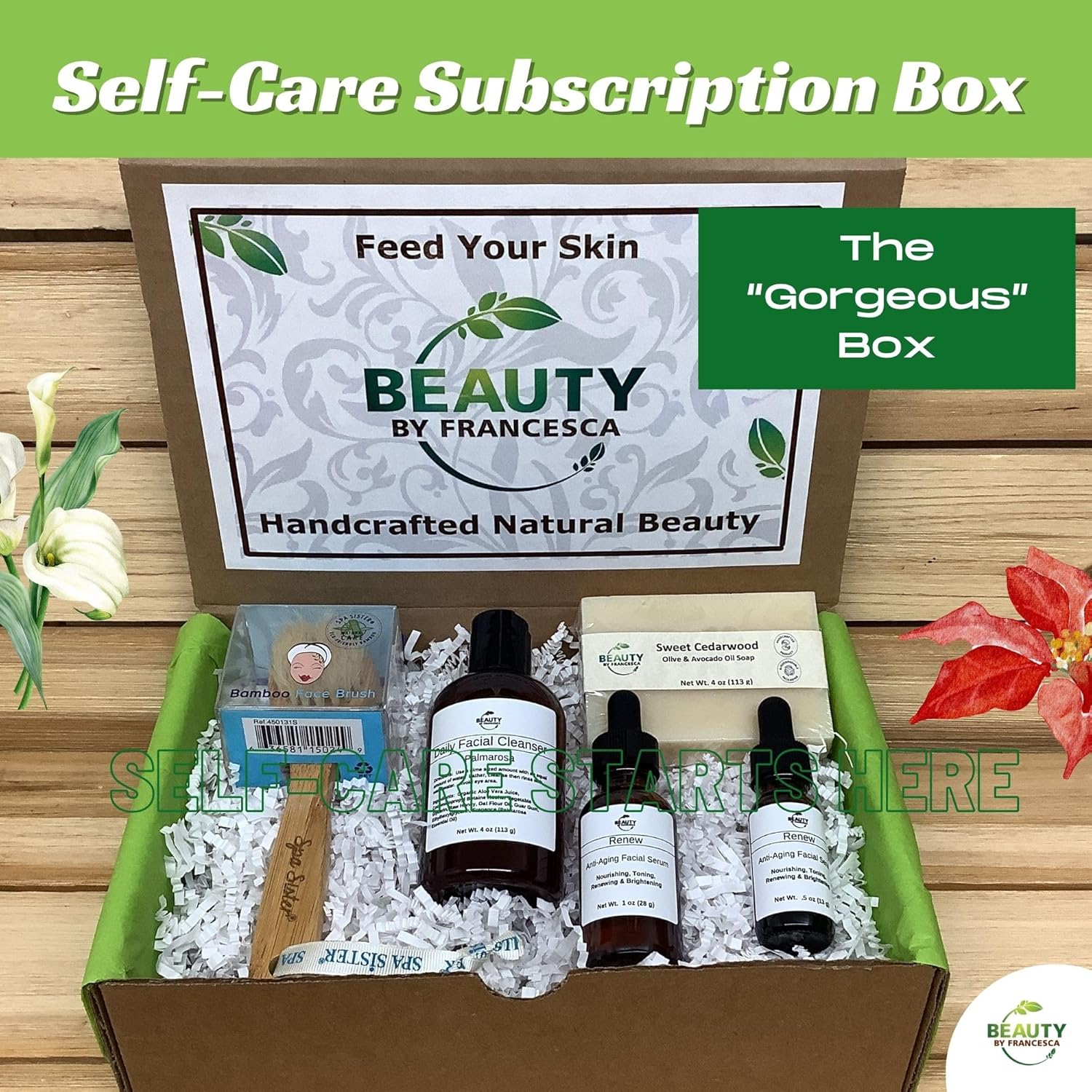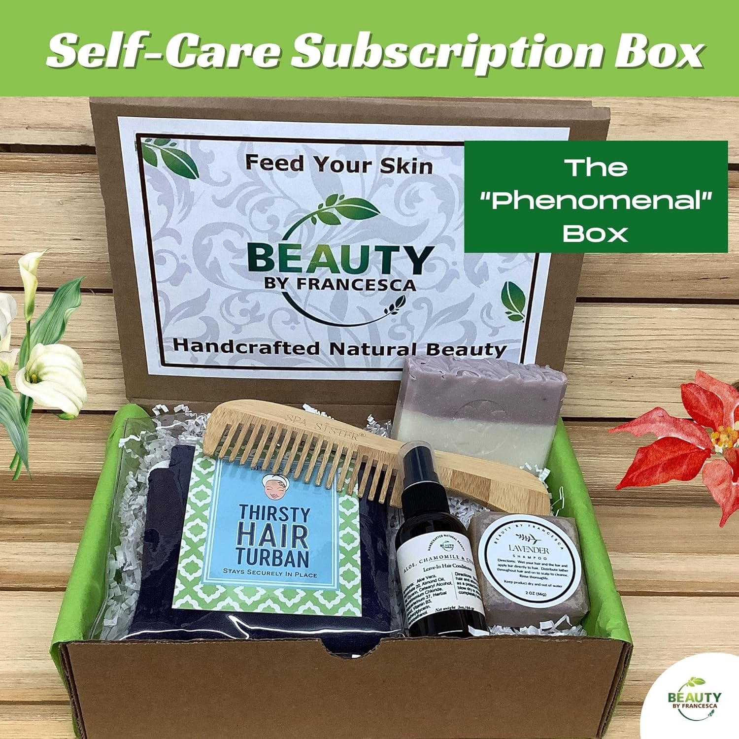 Your Subscription Box Includes All Natural and Handcrafted Products 5-6 Products in each box Monthly Self-Care Theme