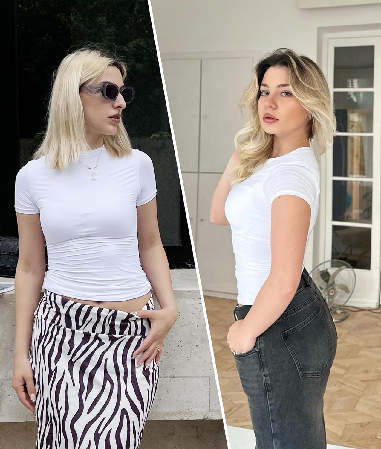 SHAPERX Women’s Crew Neck Short Sleeve Tops Fit Everybody Double Lined Fit T-Shirts Basic Tee