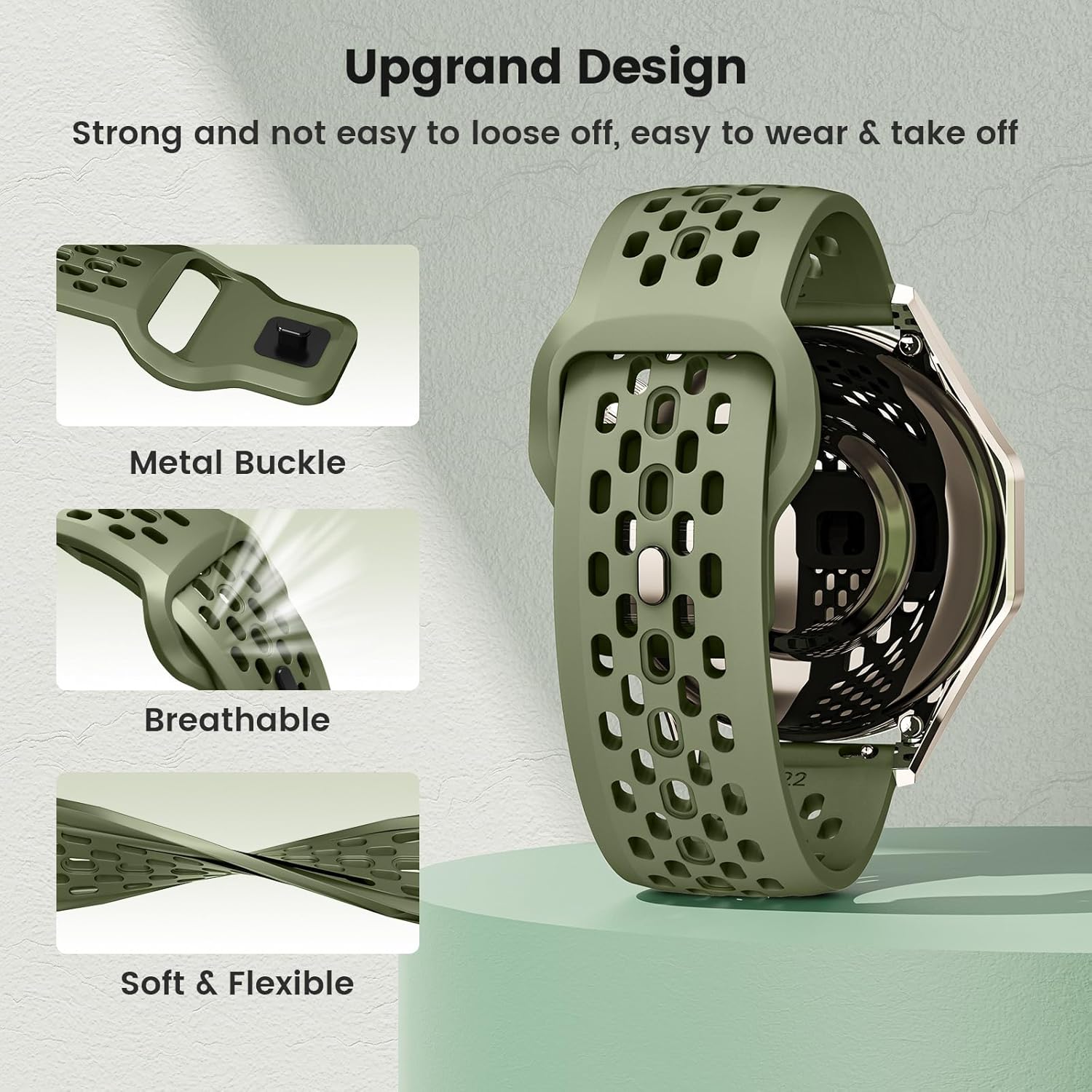Its soft silicone material, quick-release spring bars, and compatibility with various watch models make it a versatile and practical accessory.