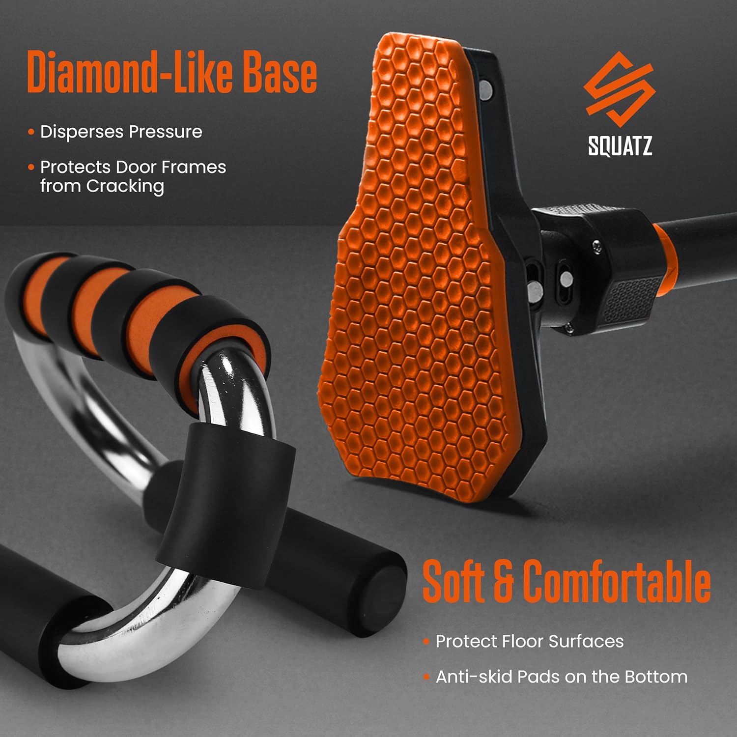 SQUATZ Doorway Pullup Bar & S-Shaped Push Up Bars – Pushup Handles for Floor – Door Frame Adjustable Pull Up Hanging Bar Home Gym Equipment