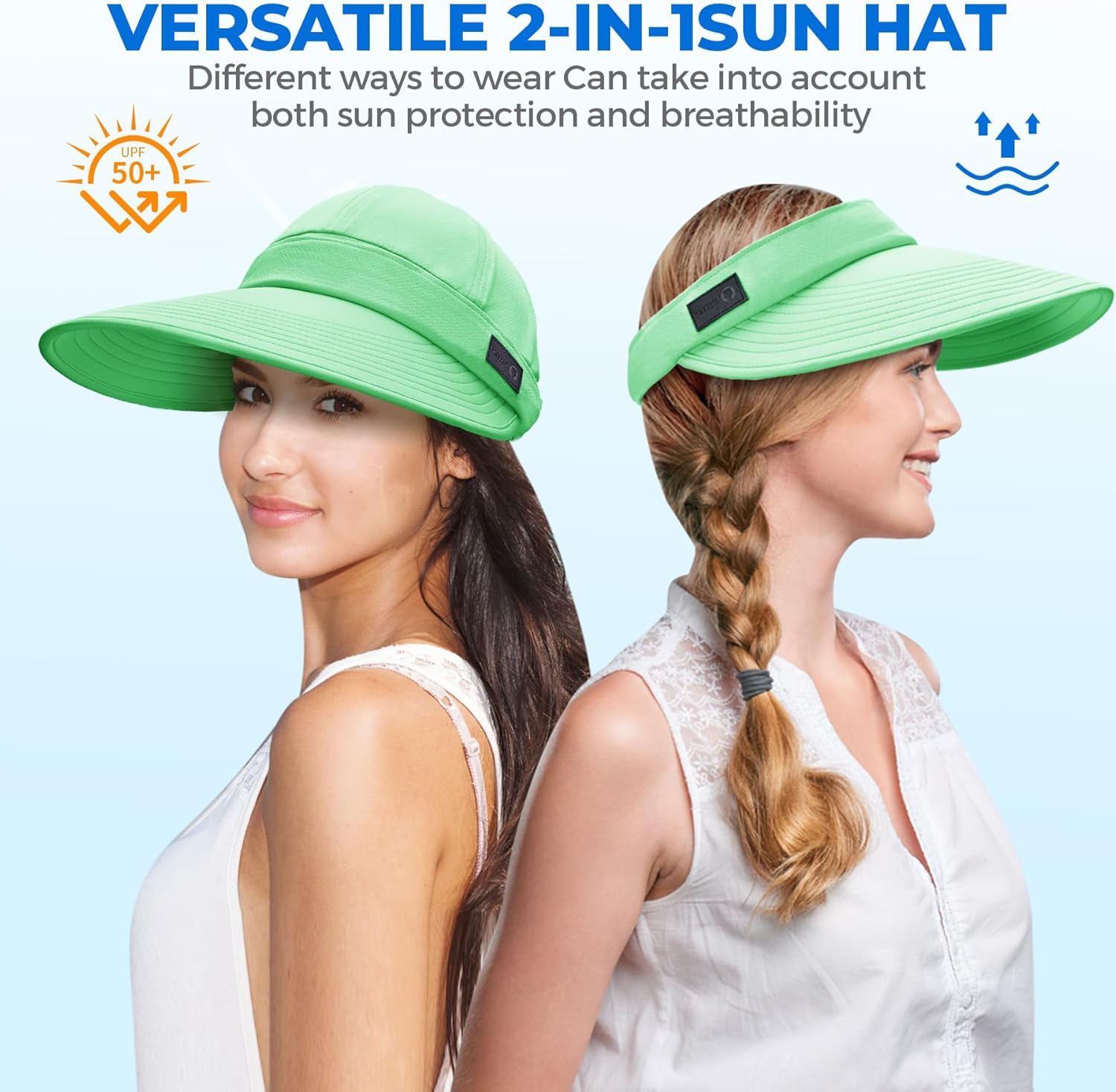 Sukeen Cooling Visor Cap for Women&Men, 2 in 1 Zip-Off Sun Hat with UV Protection for Outdoor Sports Golf Travel Tennis Beach