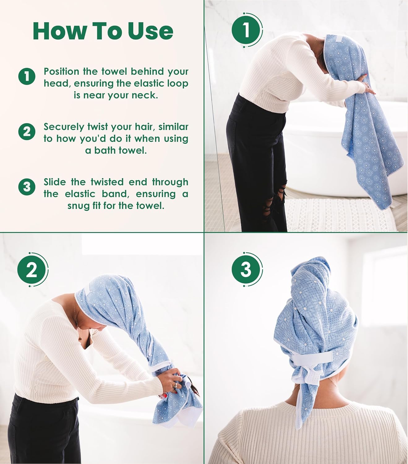 Elegance and Comfort: Experience the feeling of luxury with the soft and velvety texture of our head towel wraps for women. This hair drying towel wrap elevates your post-shower routine into a pampering experience.