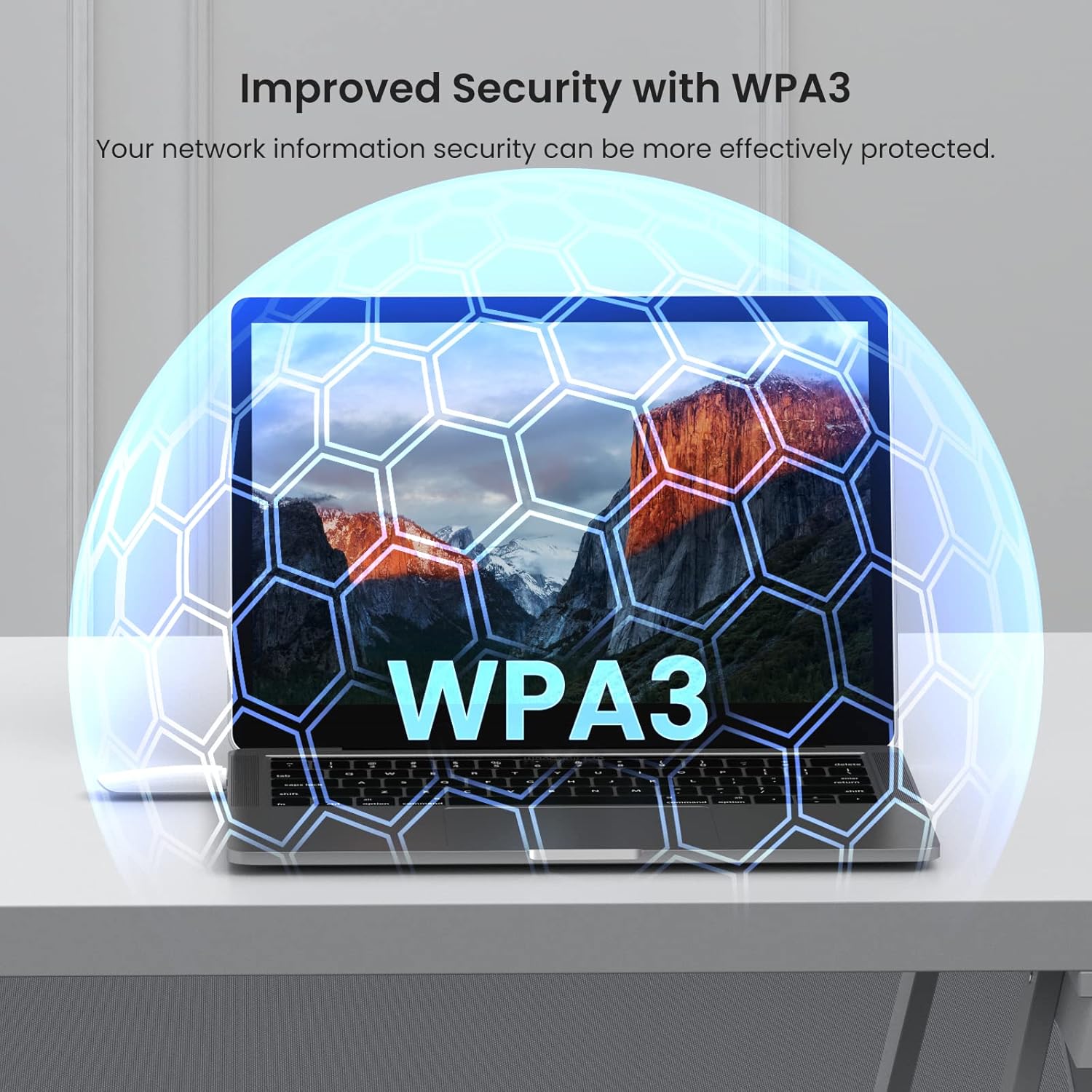 [Next-Gen WPA3 Encryption] — As the most up-to-date wireless encryption protocol, WPA3 is the most secure choice for your wifi network, your network information can be effectively protected with the Tenda U18.