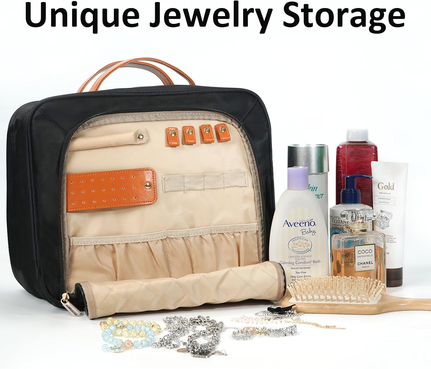 【MULTIPLE STORAGE COMPARTMENT】10.6 x 6 x 8.4 inches (rolled), 10.6 x 30.8 inches (open). This wash bag is designed with 4 toiletry storage compartments and a special jewelry compartment; you can easily put your wash products and jewelry separately to make your journey organized.