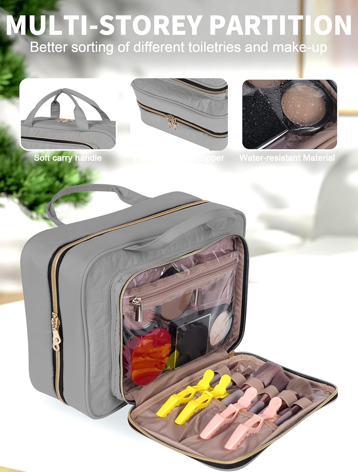 Be the first to review “Travel Toiletry Bag for Women Large Capacity with Hook – Portable Cosmetic Case,Hanging Makeup Bag for Full Sized Toiletries,Travel Essentials for Business Trips and Camping,Grey”