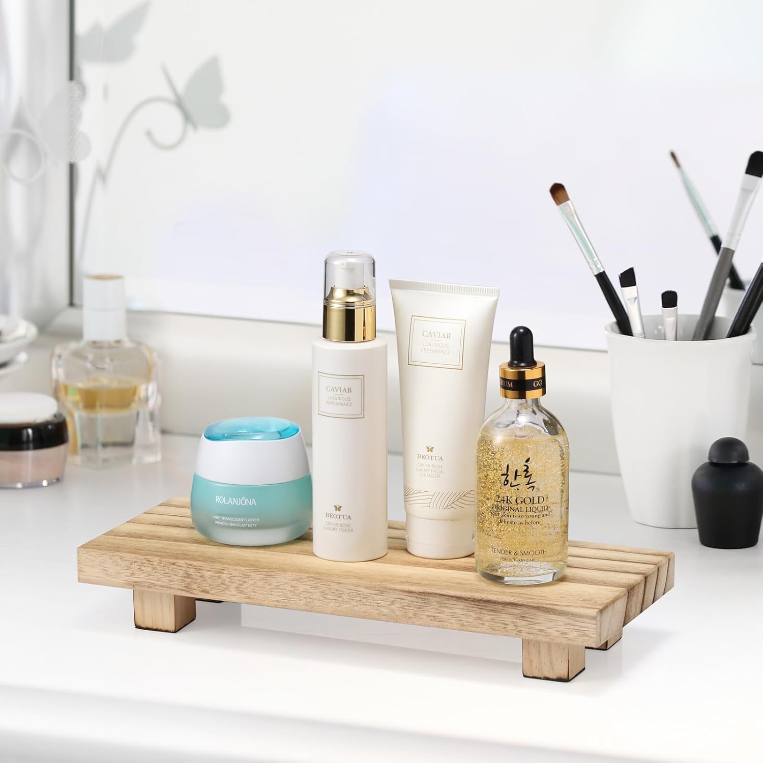 Versatile Applications: Matching well with various items such as skincare products, plants, candles, perfumes, and jewelry, these wooden risers find versatile use in living rooms, bathrooms, kitchens, and beyond, enhancing functionality and aesthetics alike.