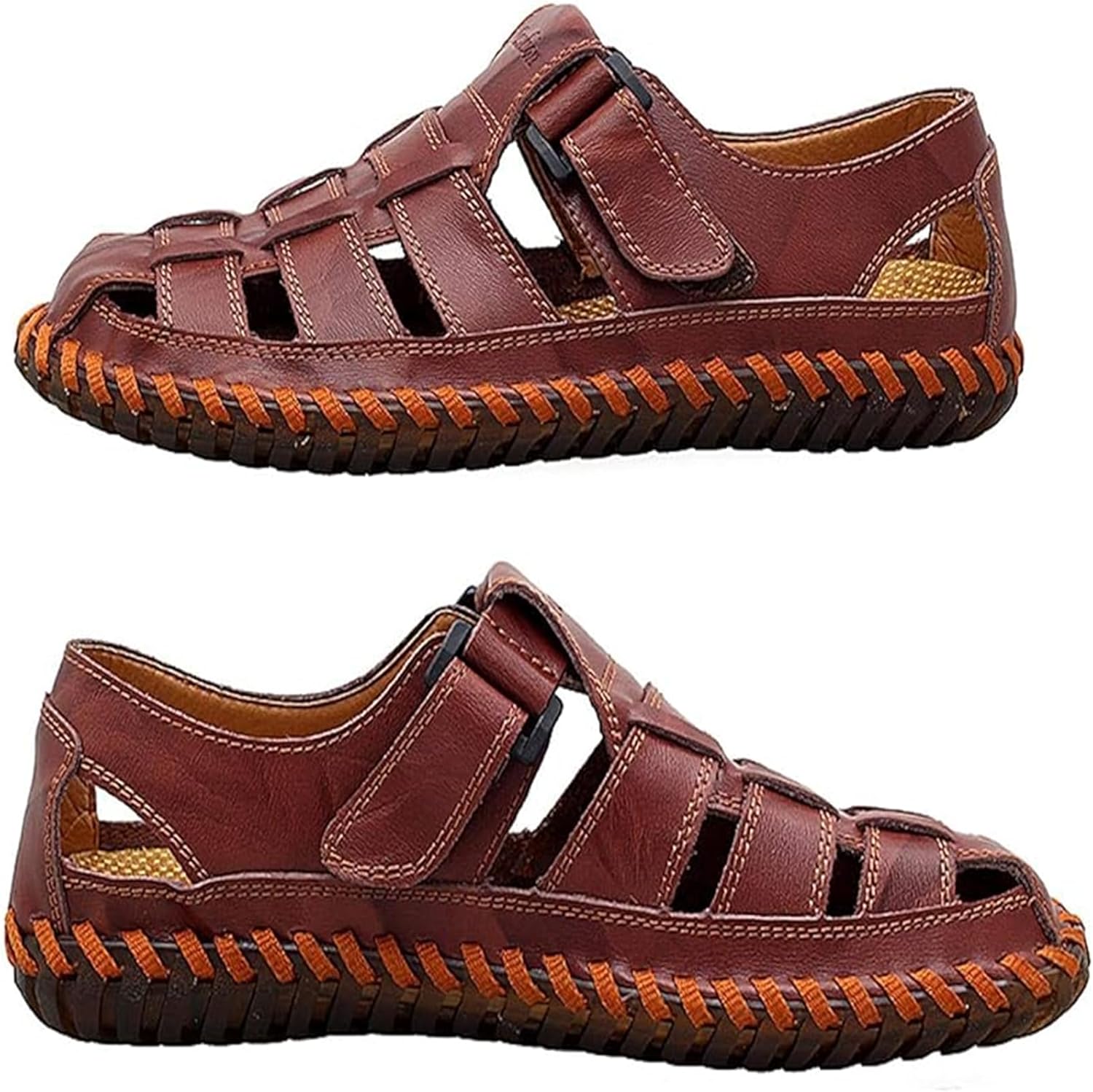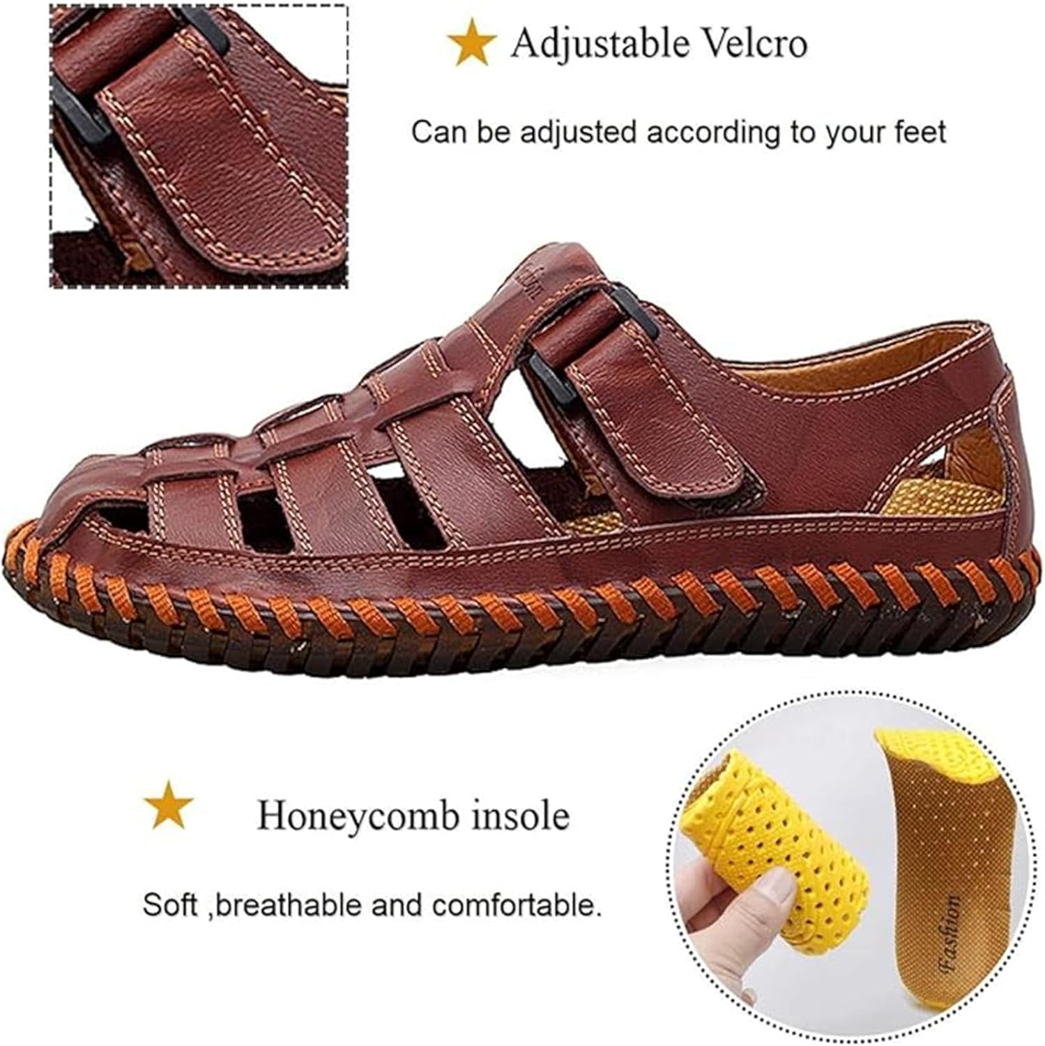 Mens Sport Sandals Breathable Outdoor Fisherman Shoes Adjustable Closed Toe Summer Leather Loafters