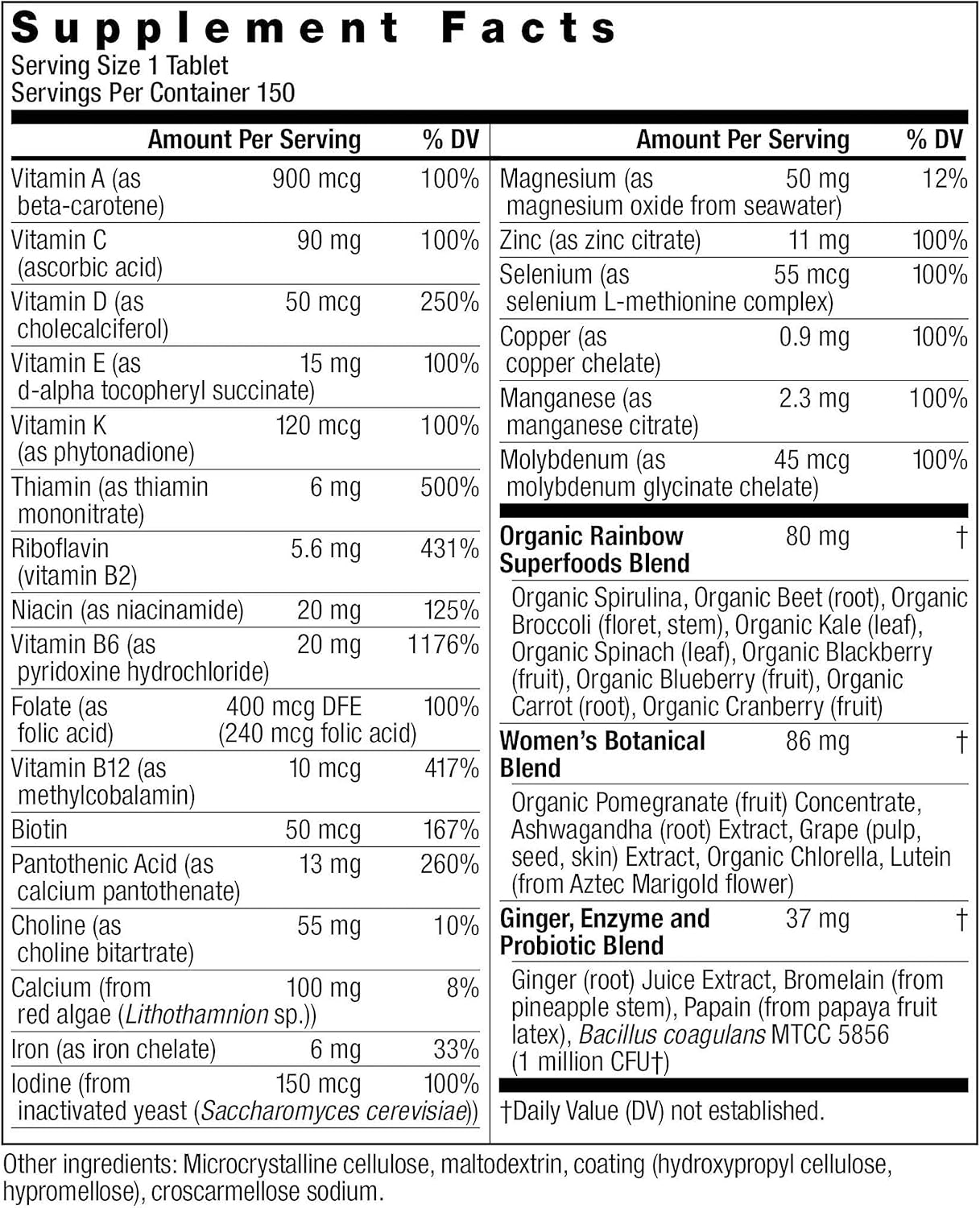 Rainbow Light Womens One High-Potency Daily Multivitamin, Womens Multivitamin Provides High-Potency Immune Support, With Vitamin C, Biotin and Ashwagandha, Vegetarian, 150 Count