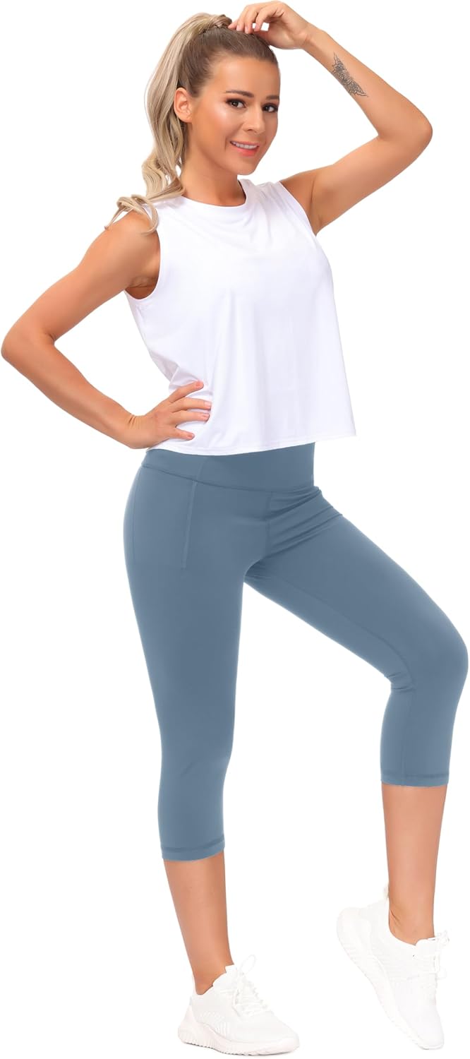 THE GYM PEOPLE Tummy Control Workout Capris Leggings with Pockets High Waist Athletic Yoga Pants for Women Running Hiking